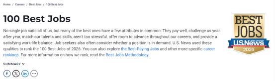 26 U.S. News 最佳职业排名出炉!10佳岗位都是谁?